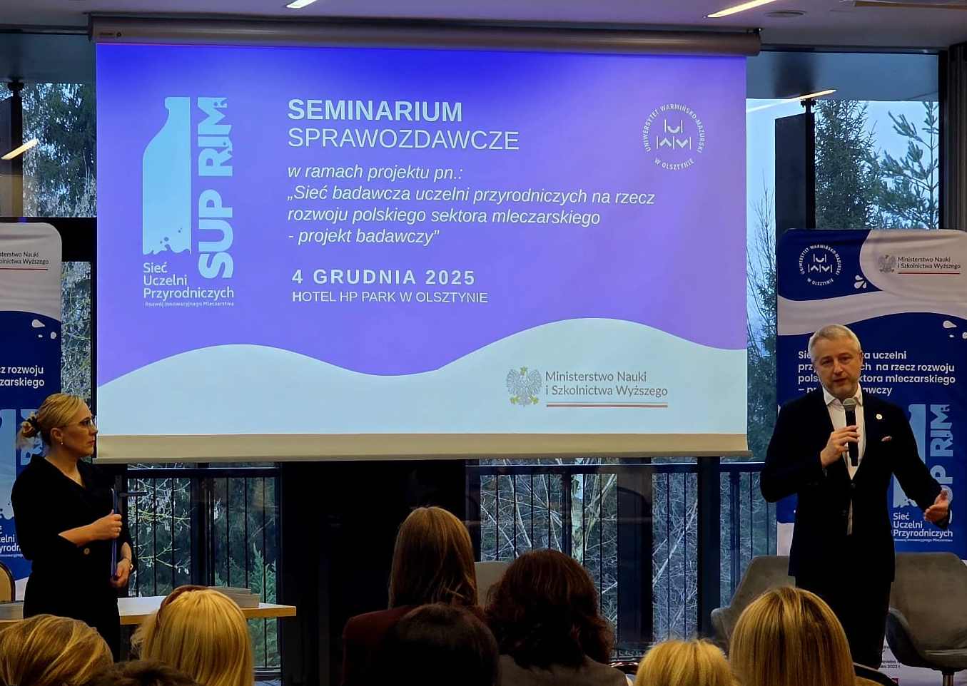 4 grudnia 2025 r. w Hotelu HP Park w Olsztynie odbyła się seria inspirujących prezentacji, w których zespoły badawcze z Uniwersytetu Warmińsko-Mazurskiego przedstawiły postępy i wyniki prac dotyczących innowacji technologicznych, jakości produktów mleczarskich, bezpieczeństwa żywności, zrównoważonej gospodarki wodno-ściekowej, nowych metod badawczych oraz trendów konsumenckich.