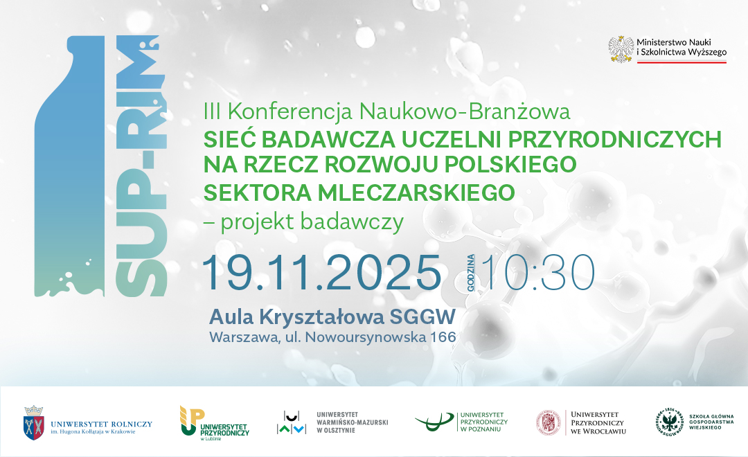 Sieć badawcza SUP-RIM zaprasza na III Konferencję Naukowo-Branżową pt: „Sieć badawcza uczelni przyrodniczych na rzecz rozwoju polskiego sektora mleczarskiego – projekt badawczy”.